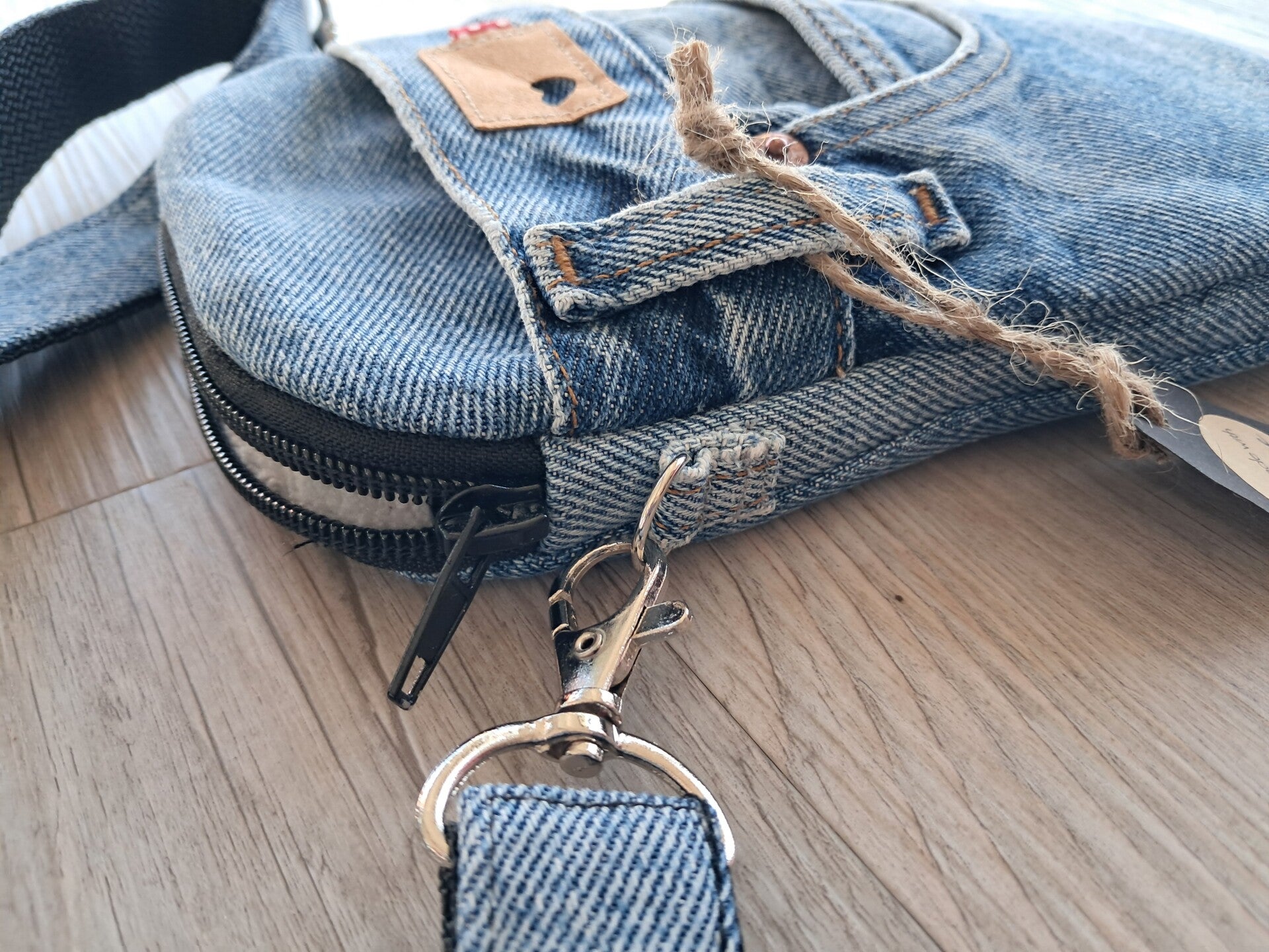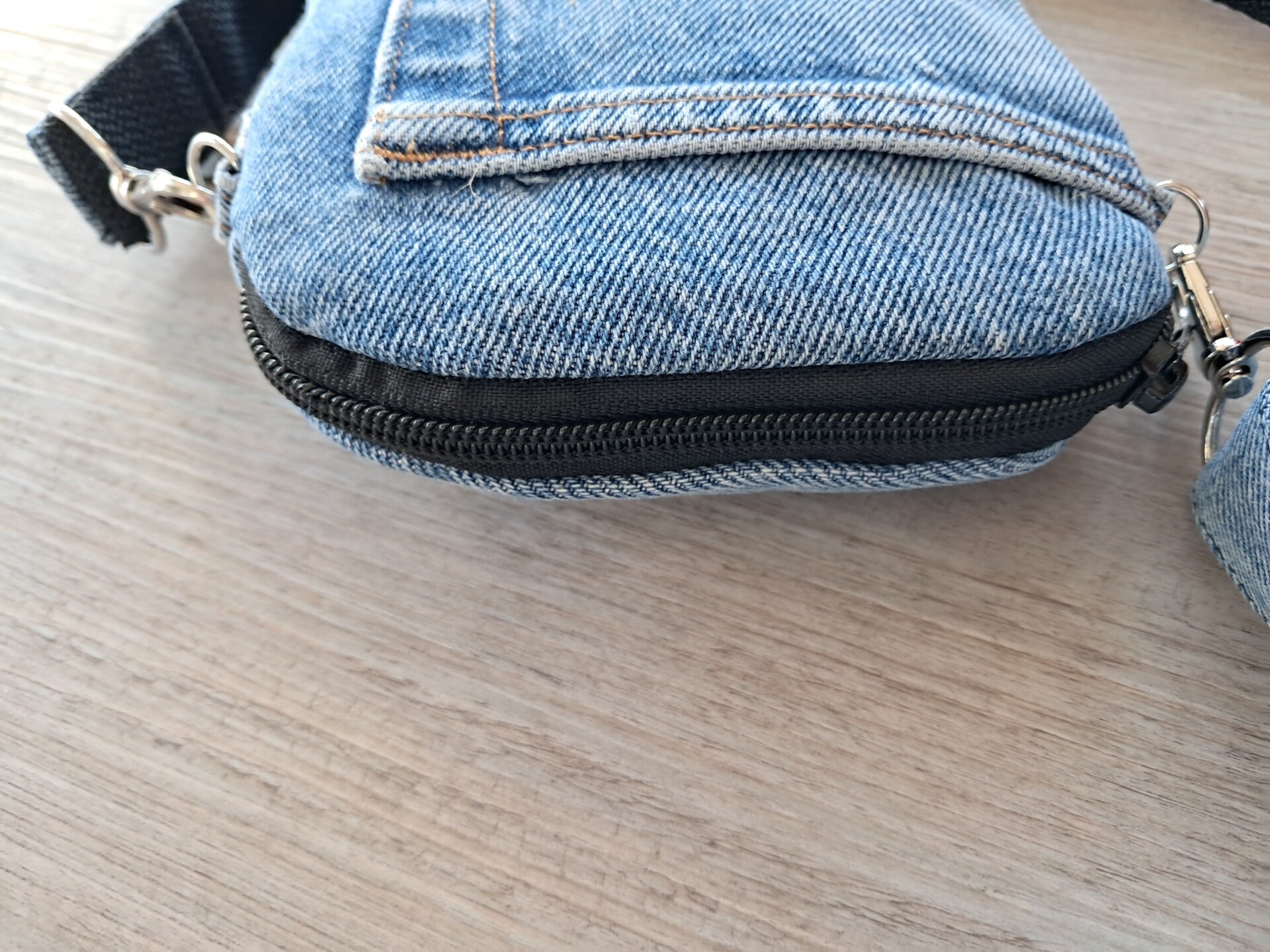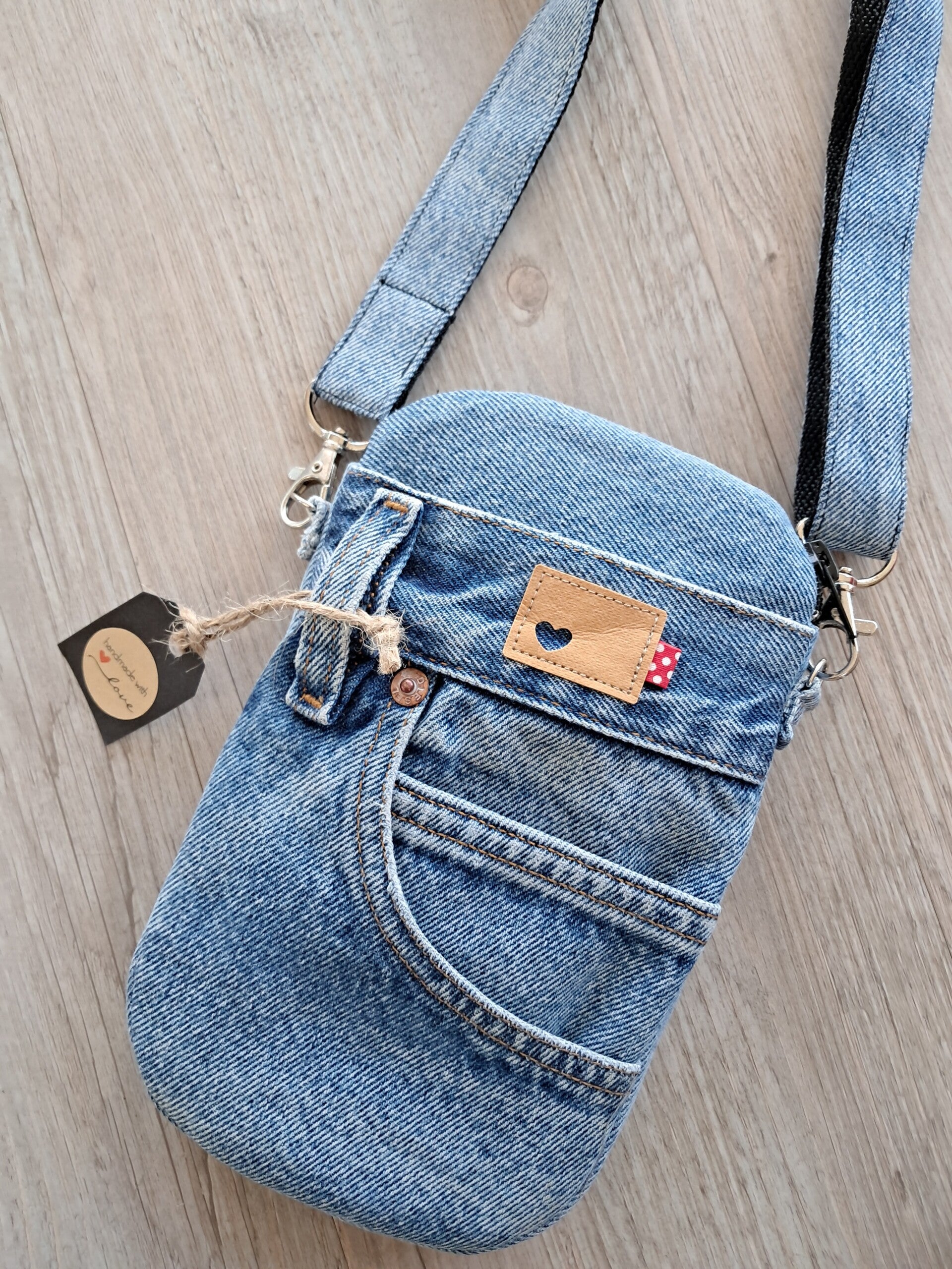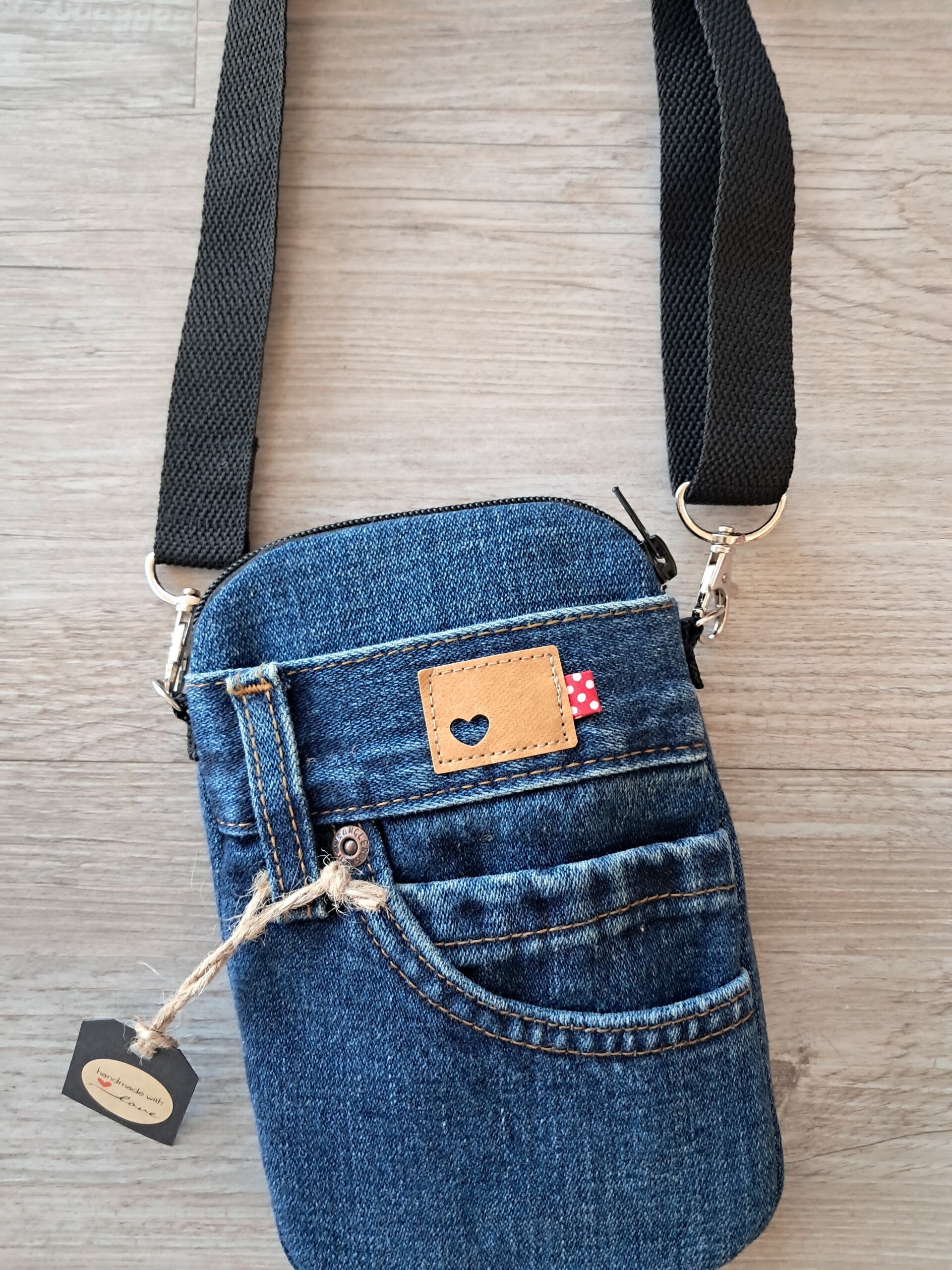 Handytasche mit Gurt aus Jeans, mit Reißverschluss, Gurt in der länge verstellbar, Innen ausgefüttert, alle Taschen mit Funktion