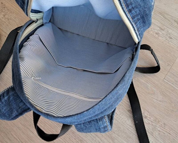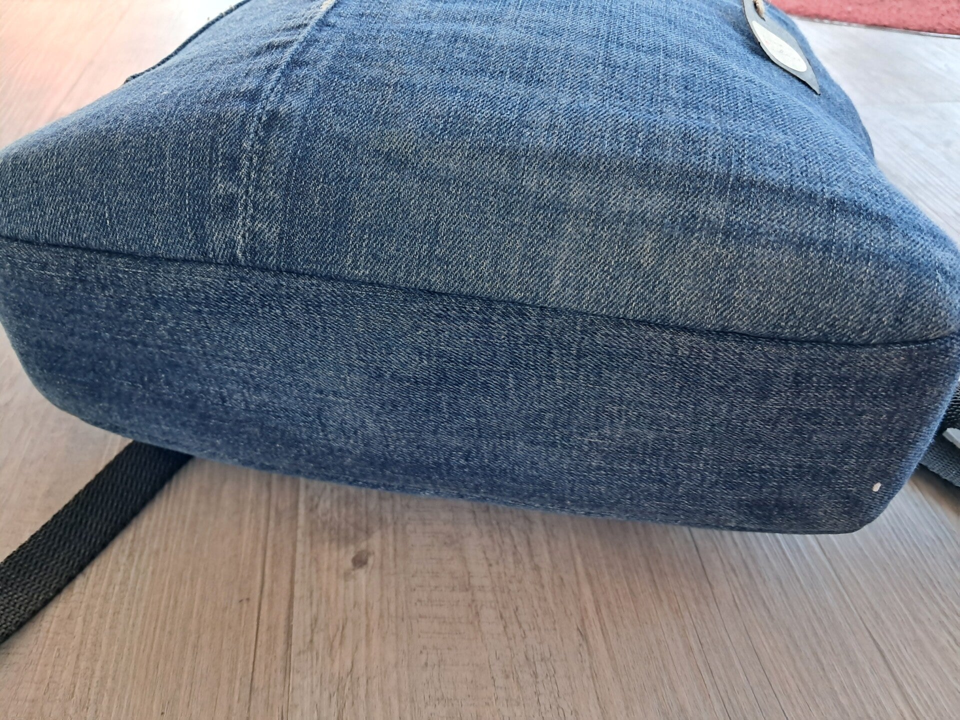 Rucksack aus Jeans, mit Reißverschluss, Gurt in der länge verstellbar, Innenfutter Baumwolle mit Taschen, alle Taschen mit Funktion, fester Boden