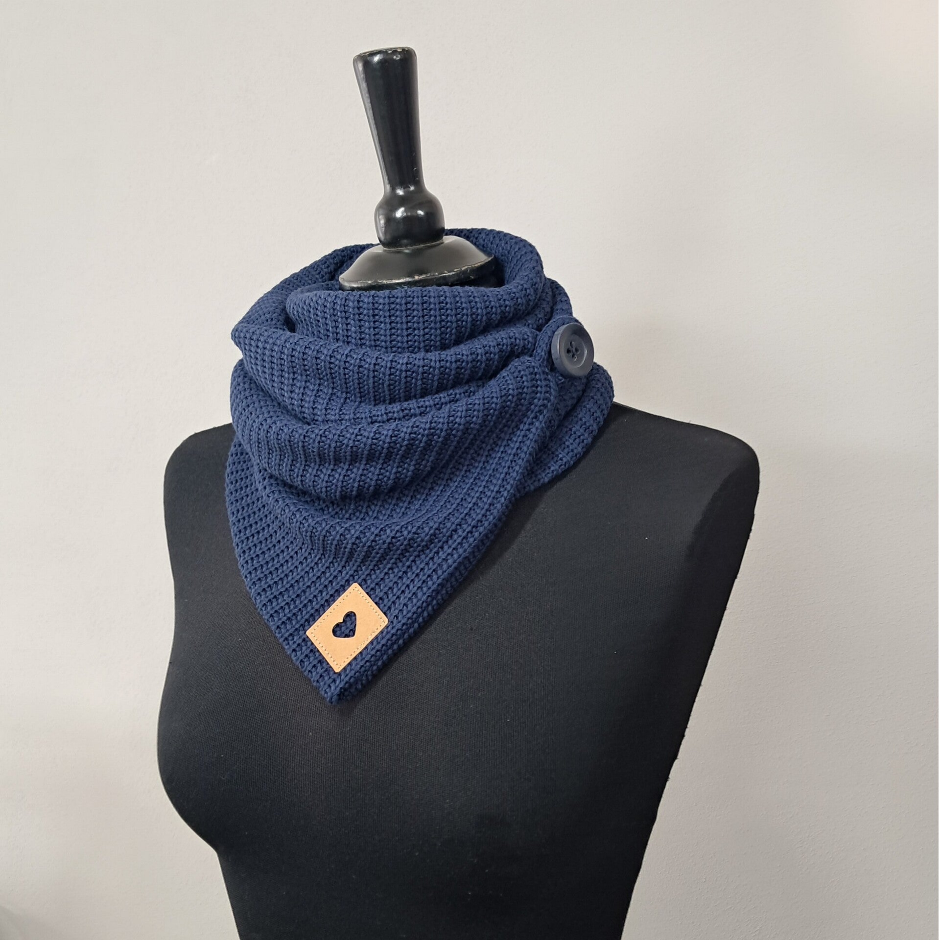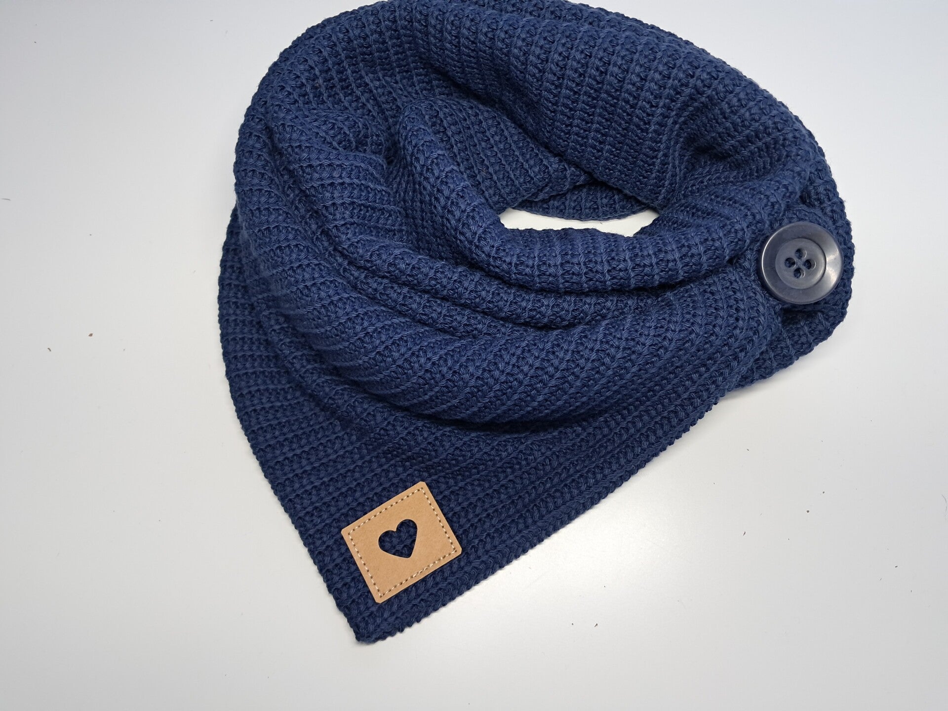 Wickelschal / Bio - Strick Marina Blau mit Herzlogo