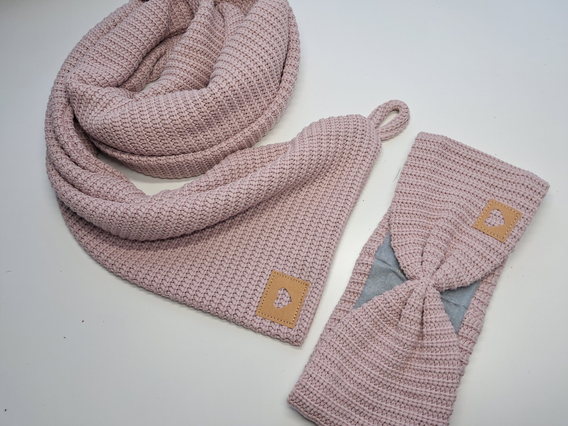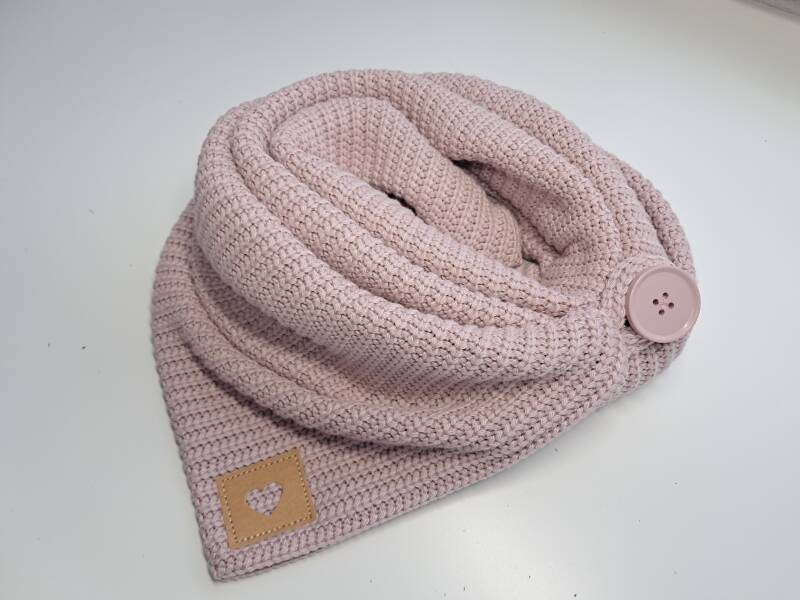 Wickelschal + Stirnband im 2er Set / Bio - Strick Altrosa mit Herzlogo