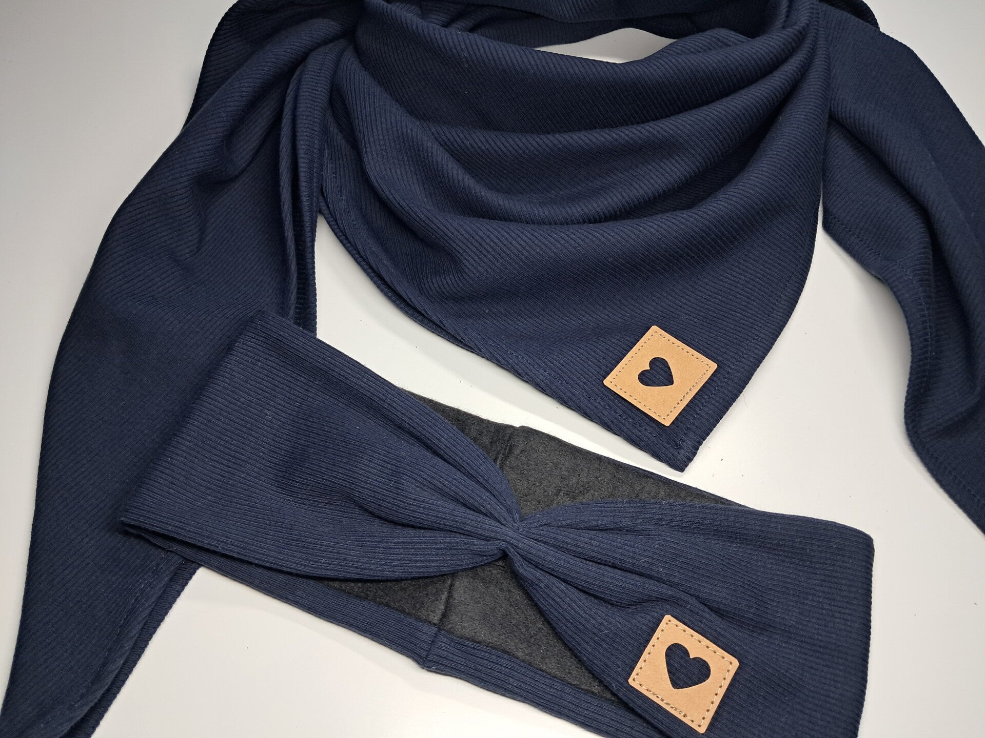 Schaltuch + Stirnband 2er Set / Rippstrick - verschiedene Farben, mit Herzlogo