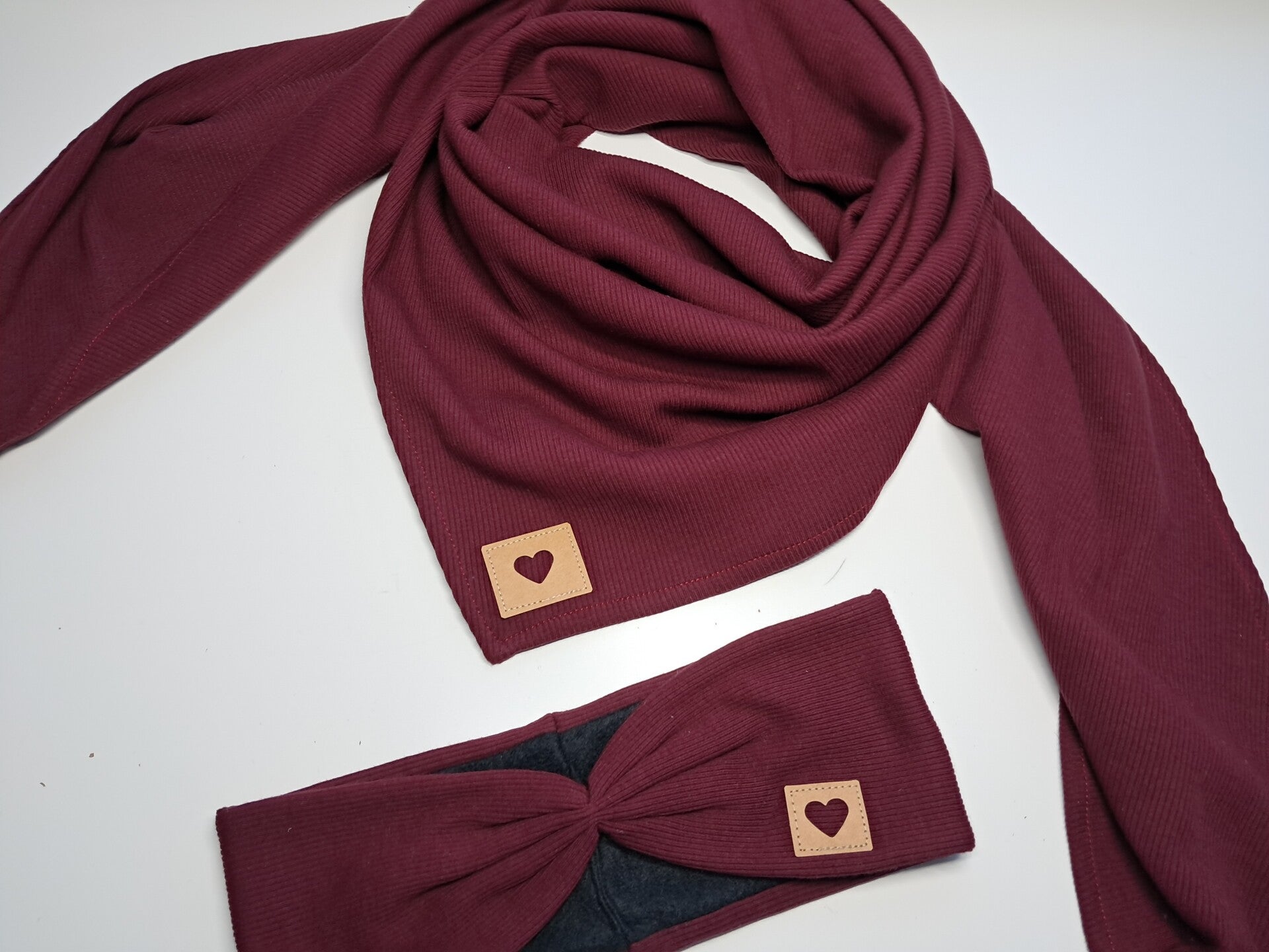 Schaltuch + Stirnband 2er Set / Rippstrick - verschiedene Farben, mit Herzlogo